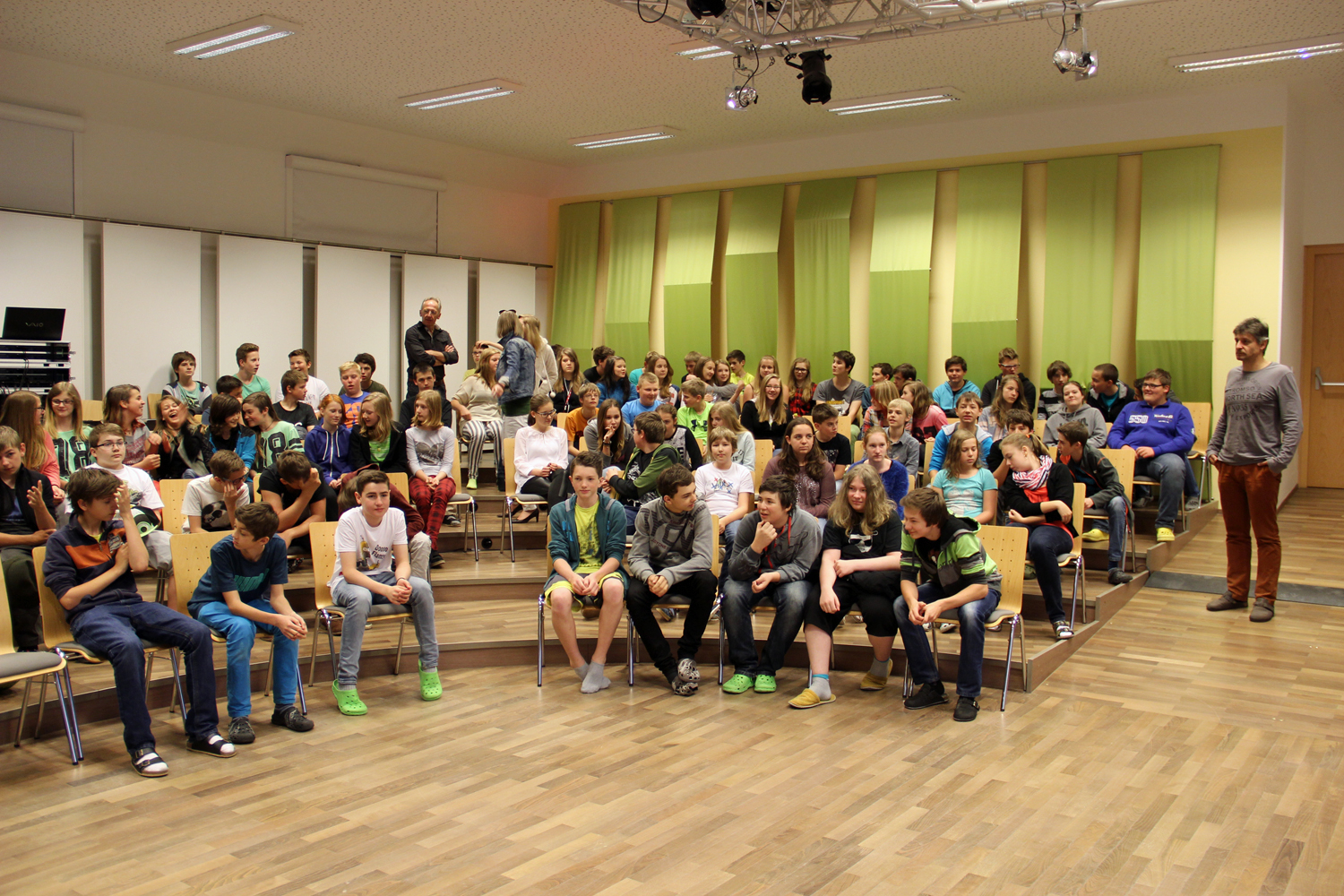 Bereits am Vormittag hatten 150 Schüler der beiden Goiserer Neuen Mittelschulen die Möglichkeit diesen Vortrag in der Landesmusikschule zu sehen.
